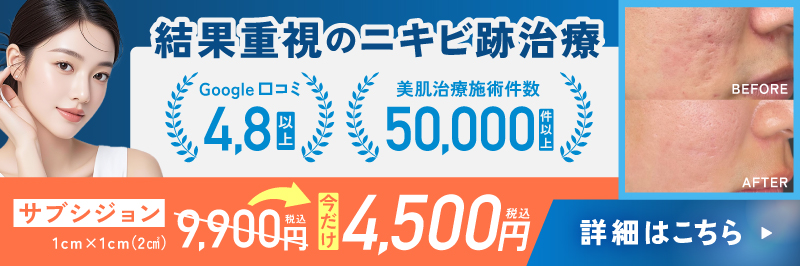 ニキビ跡のクレーター肌にお悩みの方にとって、サブシジョンは有効な治療法のひとつです。しかし、サブシジョン単独では十分な効果が得られないケースもあります。そのような場合、他の施術と併用することで、より高い改善効果が期待できるでしょう。